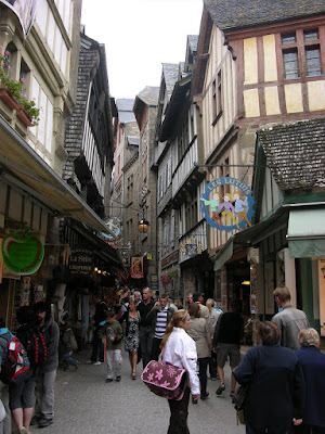 Esta calle de cáracter medieval tan conservado está en la isla de Mount Saint Michel. Uno de los lugares más visitados de Francia. Tiene un gran atractivo la forma en que se inserta en el paisaje este pequeño monasterio junto a una costa arenosa extensísima.