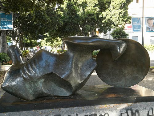 Moore es bien conocido por sus grandes esculturas abstractas de bronce fundido que pueden verse en muchos lugares alrededor del mundo como obras de arte en la calle.