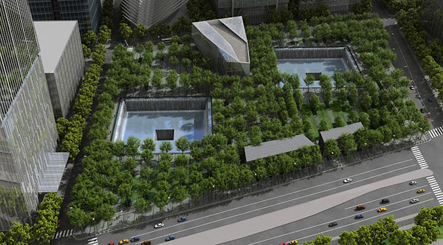 El September 11th Memorial es el resultado de un concurso de ideas que ganó el equipo encabezado por el paisajista americano Peter Walter, con la colaboración de Michael Arad. Ocupa el vacío producido por la desaparición de aquellas torres singulares que proyectará Minoru Yamasaki, que eran un símbolo representativo de la ciudad de Nueva York y, por extensión, de los Estados Unidos. Unas arquitecturas monumentales con guiños formales neogóticos que eran casi una evocación de una forma particular de entender la cultura y la propia civilización. Los dos rascacielos idénticos que formaban el World Trade Center de Nueva York no fueron nunca una muestra de arquitectura estéticamente relevante, pero, sin embargo, tanto su tamaño monumental como su posición paisajística les dieron una relevancia icónica sin parangón.