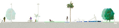 Nuevo diseño de la jardinería y arbolado, que potencie la perspectiva visual hacia el mar, el camuflaje y la integración de los espacios privados colindantes, y la creación de espacios de sombra y recreación visual.