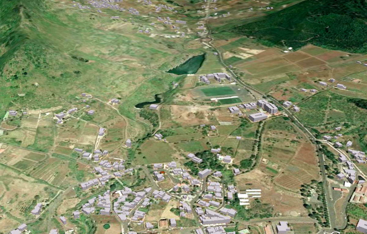 La presa del Manicero junto al nucleo urbano de Tejina