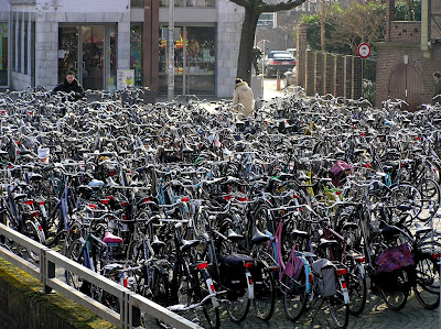 Como en Holanda, territorio ciclista. Aglomeración de bicicletas en Maastricht