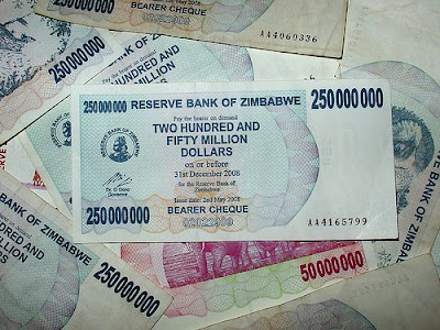 Dinero menguante. La inflación descontrolada es un desastre en el que nos estamos adentrando. Como el que ocurre en ese desgraciado país surafricano que es Zimbabwe(El que abraza los árboles, página americana sobre sostenibilidad y alternativas energéticas)
