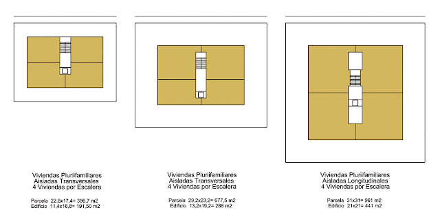 Ejemplos de organización de edificios residenciales colectivos adosados lateralmente