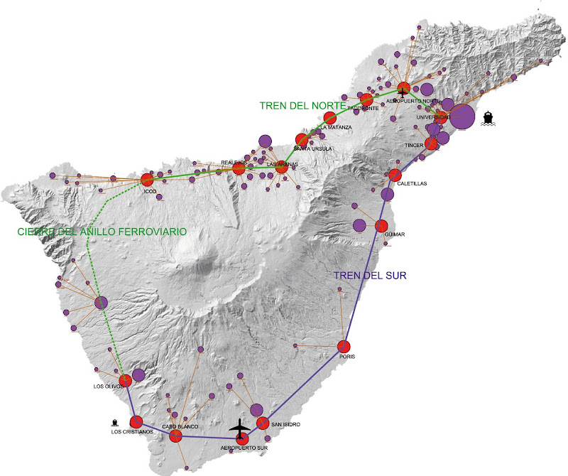 es muy interesante la propuesta de un anillo ferroviario (que por otro lado salva el escollo del vértice suroccidental de Los Gigantes), en una isla que se desarrolla en anillos concéntricos. Desde luego parece lo más lógico. Un abrazo, AM.