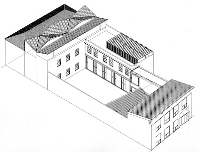 Sede de la empresa Teidagua. La Laguna, 1997.Axonometría explicativa de la intervención.