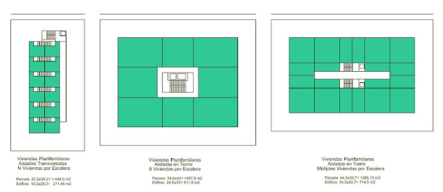 Ejemplos de organización de edificios residenciales colectivos adosados lateralmente