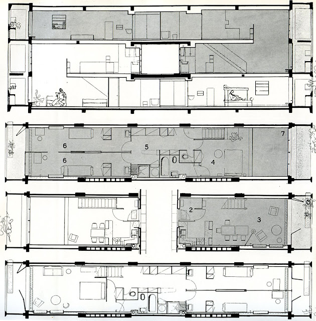 Organización del módulo característico de la Unité de Habitation de Le Corbusier