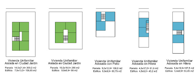Distintos ejemplos de ordenación de la vivienda unifamiliar aislada y adosada