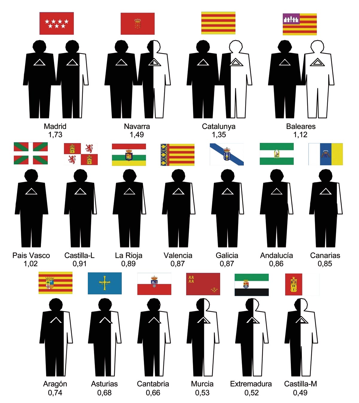 Número de arquitectos por 1000 habitantes en cada comunidad autónoma española