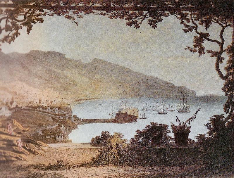 El puerto de Funchal en la isla de Madeira. Grabado del siglo XVIII