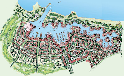 El modelo de implantación es una burda copia de las ideas avanzadas cuarenta años atrás por Francois Spoerry, avalado en este caso por un denominado Master Plan que ha sido elaborado por dos empresas americanas, Landmark y Edsa, y supondrá la remodelación de más de 1.000 hectáreas para albergar 9.000 viviendas y 20.000 plazas hoteleras que estarán acompañadas por 5 campos de golf, una marina para grandes yates y canales destinados al atraque de todo tipo de embarcaciones.