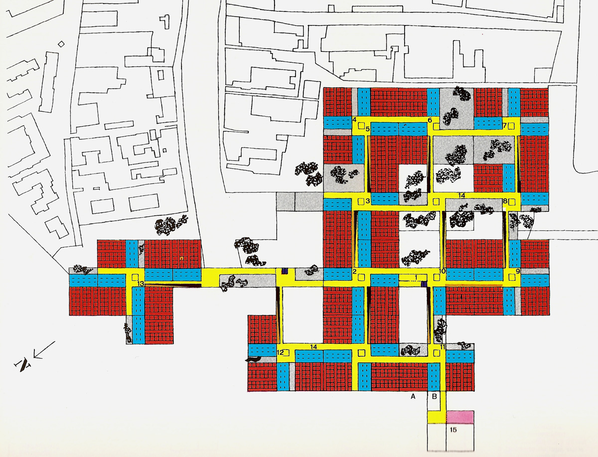Planta del nivel 3 del primer proyecto para el hospital en San Giobbe. Le Corbusier, 1964
