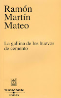 Es aquí donde aparece la gallina de los huevos de cemento a la que hace referencia el autor. Una nueva especie animal para Martín Mateo que ha heredado las tareas de un antepasado mítico con mayor fortuna y provecho. Estas peculiares aves llevarían a cabo una actividad lucrativa sumamente rentable, al transformar terrenos baldíos en lugares llenos de construcciones y en ese proceso enriquecer desmedidamente a sus interesados granjeros. La producción de la gallina de los huevos de cemento se caracterizaría por una escasa necesidad de recursos iniciales así como la ausencia de un conocimiento especializado muy complejo para poder llevar a cabo su labor por lo que su producto estaría al alcance de cualquiera y, especialmente, de aquellos individuos desalmados que están a la caza y captura de la plusvalía fácil.
