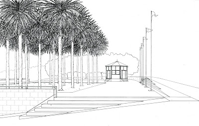 Perspectiva de la propuesta ganadora del concurso para el parque de Las Indias en la ciudad de Santa Cruz. 1992. Isla de Tenerife. Federico García Barba y José Lorenzo García. 1er Premio