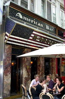 Algo similar realizaría para otro minúsculo local, el Kärnter American Bar, un espacio de 4,5 x 6 mts. Su admiración particular por la cultura estadounidense se reflejaría aquí claramente. La fachada se caracteriza por la vidriera de colores iluminados que toma como motivo la bandera americana. El empleo de materiales exóticos tales como la madera de caoba, ónice y el mármol griego de Kyros, contribuye a la dignificación de este pequeño recinto.