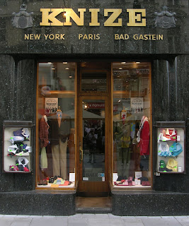 Otro ejemplo es la reforma de un local para la Sastrería Knize que se situaría en la calle más transitada de la ciudad, Graben. Su portada refleja contundentemente las ideas del arquitecto con una simplicidad funcional que luego se convertiría en estándar en muchos lugares: varias pequeñas vitrinas acristaladas a los lados de la puerta de acceso al local. El artefacto expositivo de los productos en venta se enmarcaría en dos piezas masivas en arco, de granito negro pulido, bajo un friso del mismo material que incluye el logotipo de la firma. Se configuraría así una máscara que reniega del edificio en que se integra de corte claramente historicista.