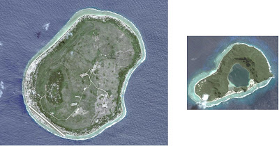Ortofoto de las islas de Nauru y Tikopia en proporción aproximada a su tamaño. Imágenes extraidas Google Earth