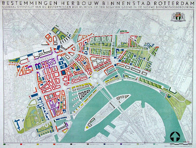 Sería el ingeniero C. van Traa el que acabaría concretando el diseño planimétrico para la modernización de Rotterdam con su Basis Plan, de 1946. Este era ante todo un documento programático, flexible y de grandes líneas maestras que permitiría luego continuas adaptaciones a las circunstancias cambiantes. Este sería el instrumento que permitiría así la reconstrucción de las zonas centrales hasta 1972, con unas bases planificadas que transformarían radicalmente la ciudad y la dotarían de una nueva imagen tan característica y claramente contemporánea. Un hecho morfológico y visual que se refleja en sus arterias y espacios centrales, como Coolsingel y Hofplein.