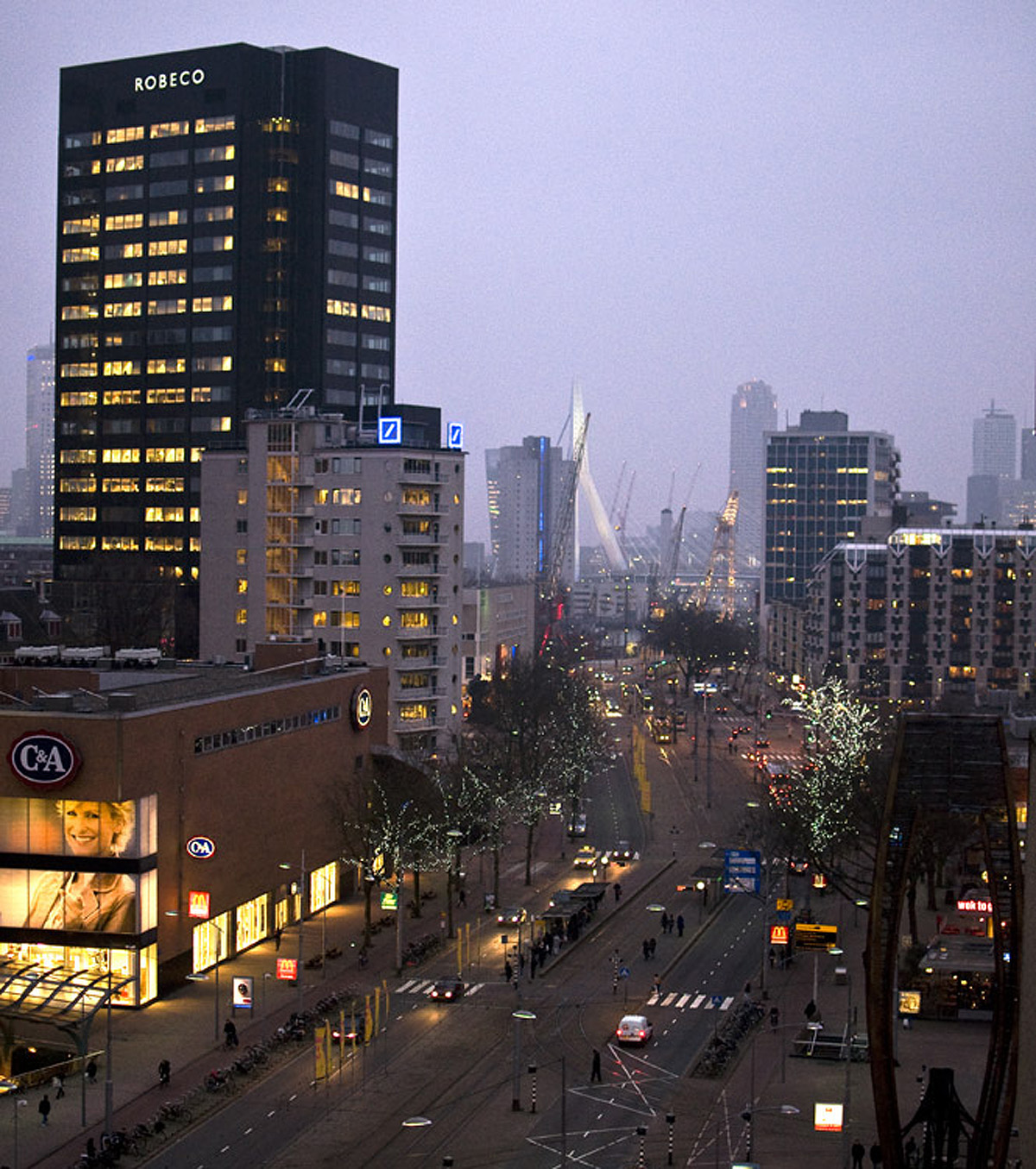 Coolsingel. La avenida principal de la ciudad con el puente Erasmus al fondo.