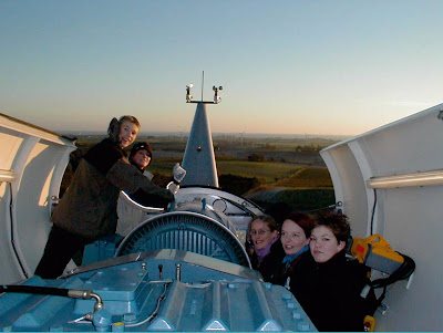 Adolescentes dentro de un aerogenerador en la isla danesa de SamsØ