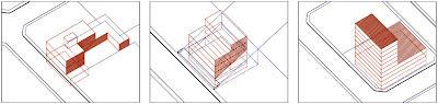 Axonometrías correspondientes a variantes de la volumetría adosda