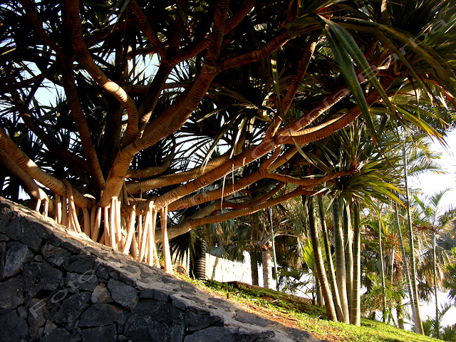 En compañía de otros entusiastas de la biología y aficionados a los jardines, exploraría un espacio que se ha construido a lo largo de casi dos décadas sobre uno de los mayores vertederos de la isla. Esa tarde, que fuimos al Palmetum, había una luz increíble. Hacia un poco de frío y eso contribuía a que el aire fuera más transparente y así todo parecía más nítido al atardecer. Las plantas brillaban y resplandecían en toda su riqueza colorística a la luz mortecina del sol poniente.