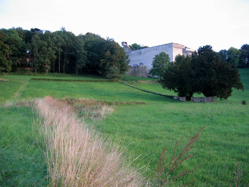 La luz del amanecer se presentó pronto sobre unas montañas próximas y después de asearme en el baño común, recogí mis cosas y me dispuse a recorrer el corto trayecto hasta el vecino monasterio de la Tourette. Me adentré en un pequeño bosquecillo por un camino rural de tierra, a través del cual vislumbré enseguida la característica silueta del edificio, coronada por su campanario de hormigón.