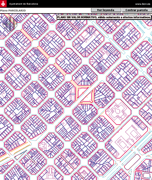 Parcelario catastral del barrio del Ensanche en la ciudad de Barcelona. Fuente: BCN Pic