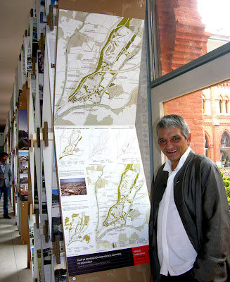 El autor del PGO de Montmeló, Sebastiá Jornet, junto al panel expuesto en la XI Bienal Española de Arquitectura y Urbanismo
